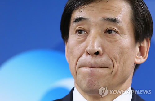 | △ 한은 기준금리 年 2.0%→1.75% (서울=연합뉴스) 서명곤 기자 = 한국은행이 금융통화위원회 본회의를 열어 기준금리를 종전 연 2.00%에서 1.75%로 내린 12일 오전 서울 중구 남대문로 한국은행에서 이주열 한국은행 총재가 금리인하 배경 등에 대한 취재진의 질문을 듣고 있다. |