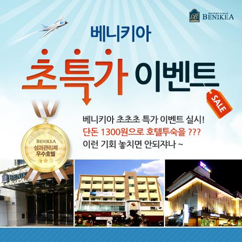 베니키아 호텔, 13일 오후 1시 1천300원부터 판매