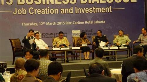 | △ 재인도네시아 한인상공회의소와 인도네시아경영자총회가 12일 자카르타에서 조코 위도도 신정부 정책당국자들을 초청, 현지 고용인력과 투자 확대 방안 마련을 위한 심도 있고 실질적인 논의를 진행했다. 패널토론에서 참가자들이 토론을 벌이고 있다. 2015.3.12 (자카르타=연합뉴스) |