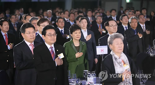 | △ 케이블TV 20주년 기념식 (서울=연합뉴스) 도광환 기자 = 박근혜 대통령이 13일 오전 서울 동대문디자인플라자(DDP)에서 열린 제20주년 케이블TV의 날 기념식에서 국기에 대한 경례를 하고 있다. |