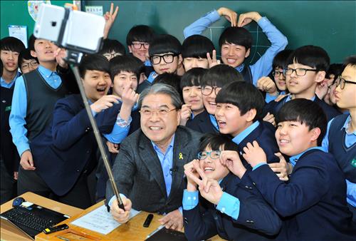 수업은 "여러 제약과 조건, 환경을 깨고 미래를 품자. 함께 미래를 만들어 가자"는 말로 마무리됐다. 수업을 마친 이 교육감은 첫 수업 때처럼 직접 준비해 온 '셀카봉'으로 학생들과 함께 기념사진을 찍었다.