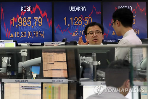 코스피는 전날보다 15.20포인트(0.77%) 오른 1,985.79로 마쳤다.