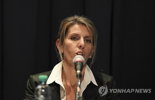 | △ (EPA=연합뉴스) 아르헨티나에서 1990년대에 발생한 폭탄테러 사건을 조사하다 사망한 알베르토 니스만 특별검사의 전처이자 현직 판사인 산드라 아로요 살가도가 5일(현지시간) 부에노스아이레스에서 기자회견하고 있다. 이날 살가도는 독자적으로 시행한 법의학 테스트에서 니스만 검사가 자살한 것이 아니라 살해됐다는 가능성을 암시하는 증거가 나타났다고 주장했다. |