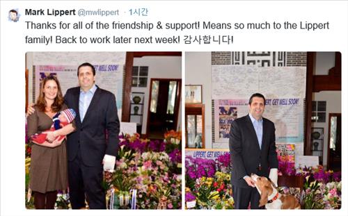 리퍼트 대사는 14일 자신의 트위터에 "모든 우정과 지원에 감사드린다. 우리 가족에게 큰 의미가 됐다. 다음 주 후반에 업무에 복귀한다"고 말했다.