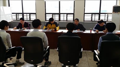 학생들은 서로 떠들고 웃는 밝은 분위기에서 5명씩 진행되는 면접을 기다리고 있었다.