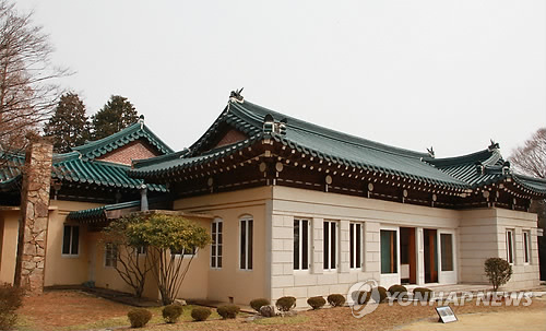 | △ 진해 해군기지내 이승만 대통령 별장 (창원=연합뉴스) 이정훈 기자 = 해군진해기지사령부내에 있는 이승만 대통령 별장 전경. 옛 일본해군 통신대가 쓰던 건물을 양옥과 한옥을 절충해 별장으로 꾸민 것으로 이 대통령 부부가 쓰던 침대, 탁자, 의자, 이탈리아에서 수입한 싱크대 등이 그대로 남아있다. 2015.3.15 seaman@yna.co.kr |