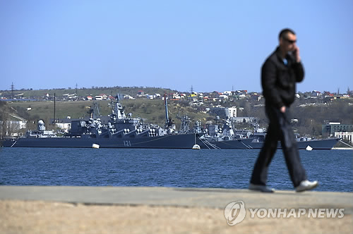 | △ 크림반도 세바스토폴항에 정박한 러시아 흑해함대 소속 군함들. (AP=연합뉴스 자료사진) |