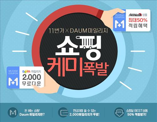 11번가에서는 이날부터 20일까지 매일 선착순 2천명에게 다음 마일리지 2천원 쿠폰을 무료로 제공한다.