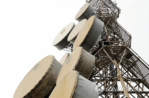 | △ KT, 백령도에도 기가 아일랜드 구축 (서울=연합뉴스) 전성훈 기자 = KT는 17일 인천광역시 옹진군 백령도 현지에서 인천시와 함께 '백령 기가 아일랜드' 선포식을 했다. 사진은 기가 아일랜드 구축에 활용된 마이크로웨이브 무선통신탑. 2015.3.17 << KT 제공 >> lucho@yna.co.kr |