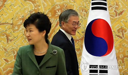 <朴대통령 "취임축하" 덕담…"공약파기" 각세운 文>