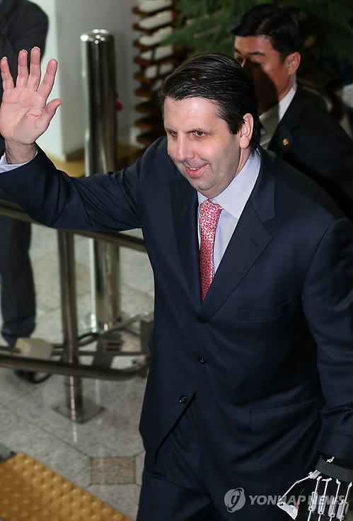 | △ 마크 리퍼트 주한 미국대사 (서울=연합뉴스) 전수영 기자 = 마크 리퍼트 주한 미국대사가 17일 오전 서울 도렴동 외교부 청사에서 대니얼 러셀 미국 국무부 동아태 차관보를 동행해 청사를 나서고 있다. 2015.3.17 swimer@yna.co.kr |