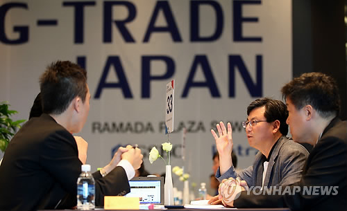 | △ 진지한 대일 수출 상담회 (수원=연합뉴스) 신영근 기자 = 29일 오전 경기도 수원시 팔달구 인계동 라마다프라자호텔에서 경기도내 180개 중소기업체와 일본 바이어 40개사가 참가한 대일 수출상담회 '2014 G-TRADE JAPAN'이 열려 진지한 수출 상담이 진행되고 있다. 2014.5.29 drops@yna.co.kr http://blog.yonhapnews.co.kr/geenang |