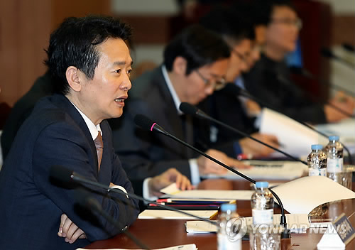 | △ 경기북부 시장·군수 간담회 (의정부=연합뉴스) 18일 오전 경기도청북부청사에서 열린 '북부권역 시장·군수 간담회'에서 남경필 경기지사(왼쪽)가 의견을 청취하고 있다. 2015.3.18 <<경기도>> suki@yna.co.kr |