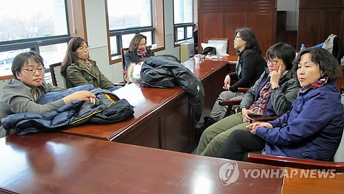 | △ "서민 자녀 교육 지원 조례안 보류하라" (창원=연합뉴스) 김영만 기자 = 18일 경남도의회 2층 상황실에서 창원·진주 등 6개 시·군 지역 학부모들이 "경남도가 무상급식 예산 지원을 중단하고 대신에 추진하는 서민 자녀 교육 지원 사업 관련 조례안을 보류하라"고 촉구하며 이틀째 도의회 의장 면담을 요구하고 있다. 2015.3.18 ymkim@yna.co.kr |
