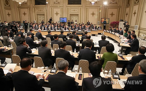 | △ 박근혜 대통령 주재로 지난 해 3월 20일 오후 청와대 영빈관에서 '제1차 규제개혁 장관회의 및 민관합동 규제개혁 점검회의'가 열리고 있다. (연합뉴스 자료사진) |