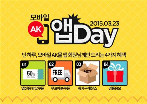 <쇼핑정보> AK몰 23일 모바일 앱 구매 50% 할인