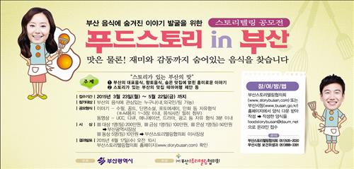 부산시와 부산스토리텔링협의회는 이달 23일부터 2개월간 '스토리가 있는 부산음식, 스토리텔링 공모전'을 연다.
