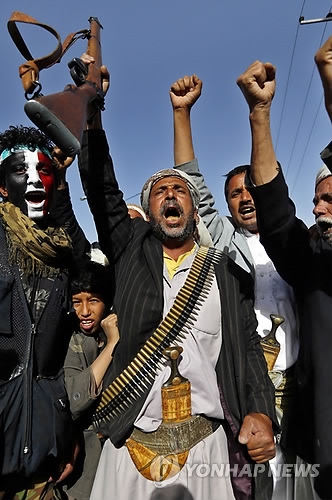 하디 대통령은 후티의 배후에 이란이 있다며 "이란의 깃발 대신 예멘의 국기가 (반군이 장악한) 북부 사다 지역 마란산에 내걸리게 될 것"이라고 말했다.