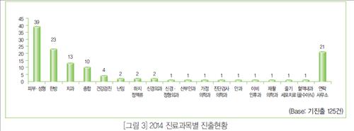 해외 진출 의료기관 10곳 중 3곳은 피부과나 성형외과가 주요 진료과목이었다. 피부·성형(39건) 다음으로 한방(23건), 치과(13건), 종합(10건) 등이 뒤를 이었다.