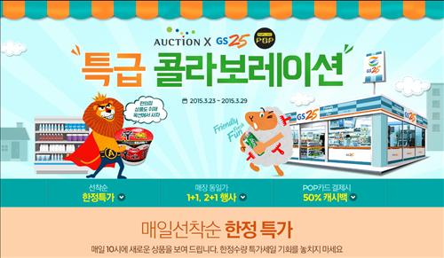 (서울=연합뉴스) 김아람 기자 = 편의점 GS25와 오픈마켓 옥션은 오는 29일까지 GS25 행사 상품을 옥션에서 파는 '특급 콜라보레이션' 행사를 연다고 23일 밝혔다.