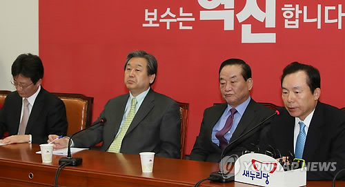| △ 모두발언하는 이인제 (서울=연합뉴스) 진성철 기자 = 새누리당 이인제 최고위원(오른쪽)이 23일 국회에서 열린 최고위원회의에서 모두발언하고 있다. |