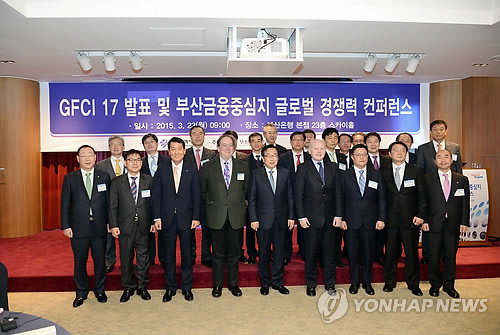 | △ 부산금융중심지 글로벌 콘퍼런스 (부산=연합뉴스) 영국의 Z/YEN그룹이 23일 부산에서 금융중심지 글로벌 콘퍼런스를 열고 국제금융센터지수를 발표했다. 부산은 이번 발표에서 세계 금융도시 순위 24위에 올랐다. 2015.3.23 joseph@yna.co.kr |