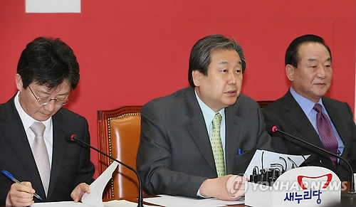 | △ 김무성 "종북세력 국회진출 사태 정상화하는 선거" (서울=연합뉴스) 진성철 기자 = 새누리당 김무성 대표가 23일 국회에서 열린 최고위원회의에서 4·29 국회의원 재보선에 대해 "지난 총선에서 자유민주주의와 시장경제를 부정하고 내란을 선동하는 종북세력의 국회진출이라는 있을 수 없는 사태가 벌어졌었는데 이를 정상화시키는 선거"라고 말하고 있다. |