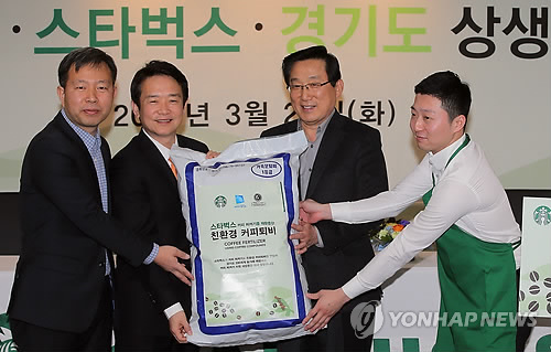 남경필 경기도지사, 이석구 스타벅스코리아 대표이사, 전대경 미듬영농조합법인 대표는 24일 오전 11시 서울 스타벅스 본사에서 상생협약을 체결했다.