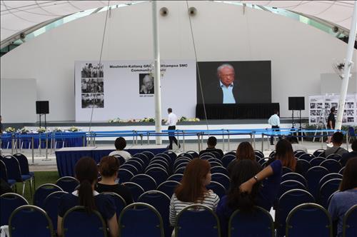 가설된 임시 천막 안에는 시민 30~40명이 모여 리 전 총리의 업적을 기리는 다큐멘터리를 보고 있었다.