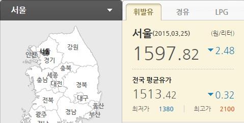 현재 서울 은평구 에이앤이은평주유소(SK에너지)와 구로구 삼한주유소(에쓰오일)가 휘발유를 ℓ당 1천449원에 판매하는 것이 서울지역 최저가이다.