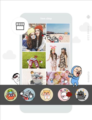 이번에 오픈한 디지털 아이템샵에서는 스티커, 코믹 마스크, 콜라주, 미용 아이템, 효과 아이템 등 사진을 꾸미는 데 필요한 다양한 아이템들을 만나볼 수 있다.