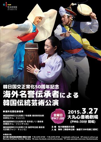 주오사카 한국문화원(원장 박영혜)은 오는 27일 오후 오사카시 다이마루신사이바시(大丸心齊橋) 극장에서 한·일 국교 정상화 50주년 기념 공연을 펼친다.