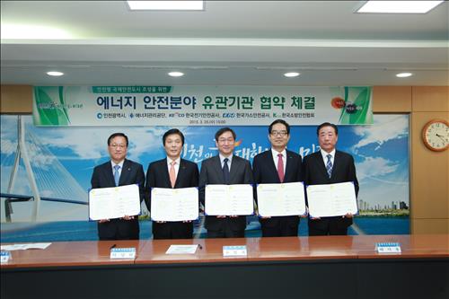 (서울=연합뉴스) 이웅 기자 = 한국가스안전공사와 한국전기안전공사가 25일 인천시와 에너지 관련 재난과 안전사고 예방을 위한 '에너지 안전분야 업무협약(MOU)'을 체결했다고 밝혔다.