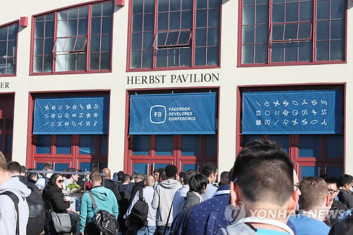 | △ 페이스북 F8 개발자 회의 (샌프란시스코=연합뉴스) 임화섭 특파원 = 25일(현지시간) 미국 샌프란시스코 포트 메이슨 센터에서 페이스북 'F8 2015' 개발자 회의 개막을 앞두고 참석자들이 입장을 기다리고 있다. 2015.3.26 solatido@yna.co.kr |