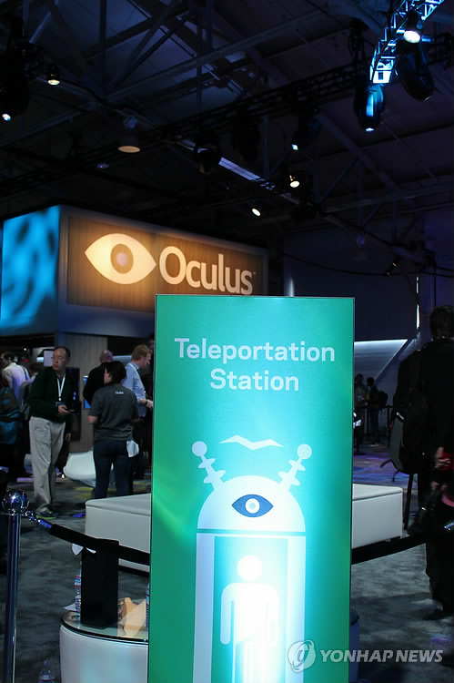 연합뉴스 특파원이 텔레포테이션 스테이션에 들어가 오큘러스와 삼성전자가 공동 개발한 '기어 VR'을 머리에 쓰자, 눈앞에 펼쳐지는 광경은 인공조명이 비치는 실내 전시장이 아니라 캘리포니아의 눈 부신 햇살이 가득한 야외 카페로 변했다.