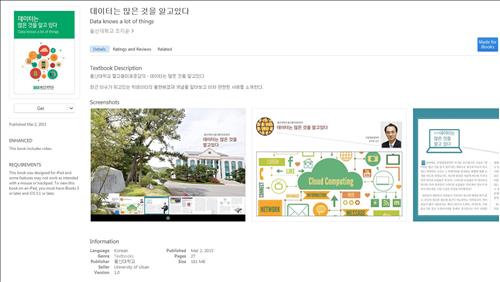 울산대는 지난 3년간 총 26권의 강의교재를 전자책으로 제작해 강의시간에 활용해오다가 최근 조지운 산업경영공학부 교수가 집필한 전자책 '데이터는 많은 것을 알고 있다'를 공식적으로 세계 최대 무료 교육콘텐츠 온라인 카탈로그인 애플의 'iTunes Store(아이튠즈 스토어)'에 공개했다.