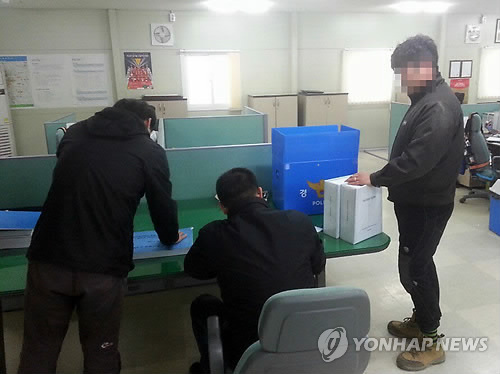 | △ 용인 교량상판 붕괴사고 시공사 사무실 압수수색 (용인=연합뉴스) 9명의 사상자를 낸 경기 용인 교량상판 붕괴사고와 관련, 경찰이 26일 오후 경기도 화성시 동탄면 장지리에 있는 롯데건설 사무실을 압수수색하고 있다. 2015.3.26 <<연합뉴스TV 제공>> young86@yna.co.kr |