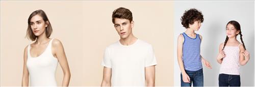 여성용은 브라탱크탑, 다채로운 색상과 패턴의 U넥T, 캐미솔 등 11가지로, 남성용은 기본적인 상의 티셔츠 타입과 땀을 흘리기 쉬운 여름철 바지 안의 이너로도 입을 수 있는 '스테테코' 등 9가지 상품으로 구성돼 있다.