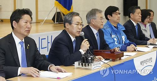 | △ 현안 발언하는 우윤근 원내대표 (성남=연합뉴스) 이상학 기자 = 새정치민주연합 우윤근 원내대표가 27일 오전 성남시 중원구 성남시근로자종합복지관에서 열린 현장최고위원회의에서 4.29 재보궐선거 현안 발언을 하고 있다. |