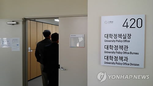 | △ 검찰, 교육부 압수수색 (세종=연합뉴스) 배재만 기자 = 이명박 정부 시절 청와대 교육문화수석을 지낸 박범훈 전 중앙대 총장의 비리 혐의와 관련 검찰이 27일 오전 정부세종청사 교육부 대학정책과에 대한 압수수색을 실시하고 있다. |