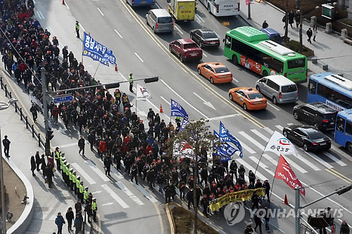 집회 후 7천여명은 여의도 국민은행 앞까지 4개 차로로 행진했다.