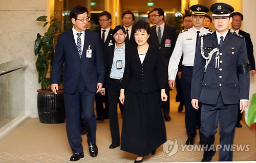 | △ 싱가포르 도착한 박 대통령 (싱가포르=연합뉴스) 도광환 기자 = 박근혜 대통령이 리콴유 전 싱가포르 총리의 국가장례식에 참석하기 위해 29일 새벽 싱가포르 창이 국제공항에 도착, 공항을 나서고 있다. |