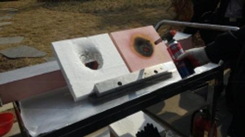 반면 PF단열재는 겉 부분만 그을릴 뿐, 속은 타지 않고 연기도 나지 않았다.
