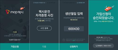 스마트폰에 'T맵 택시' 앱을 설치한 후 택시 자격증명 전송과 생년월일 입력하고 SK플래닛의 승인절차를 거치면 가입된다.