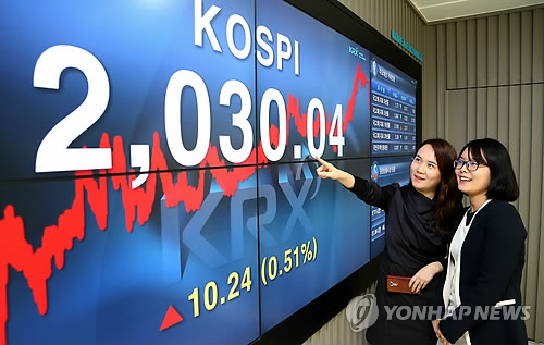 이날 코스피는 전 거래일보다 10.24포인트(0.51%) 오른 2,030.04에 마감했다.