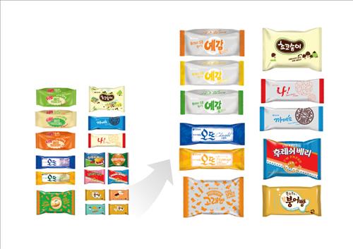 예감, 고래밥, 오뜨, 참붕어빵 등 22개 브랜드 제품의 디자인을 단순화해 인쇄 도수를 줄이는 작업이 핵심이다.
