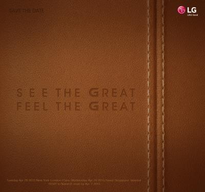 초대장 배경은 브라운 색상의 가죽 스트랩으로, 이는 G4의 후면 커버가 가죽 소재로 제작됐음을 암시하는 것으로 추정된다.