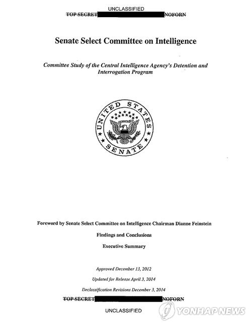 | △ 작년 12월 미국 상원이 공개한 CIA 고문실태 보고서 (AP=연합뉴스) 2015.3.31 |