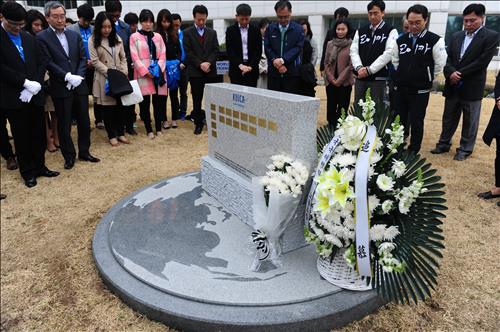 김 이사장은 추모비에 헌화한 뒤 "여기 추모비에는 전 세계 ODA 현장에서 고독과 싸우면서도 개도국 발전과 대한민국의 위상 제고를 위해 분투하다 우리 곁을 떠난 영령들의 숭고한 정신이 깃들어 있다"며 "추모비 제막을 계기로 국제개발협력 발전에 헌신한 고인들의 뜻이 널리 알려지기를 바란다"고 밝혔다.