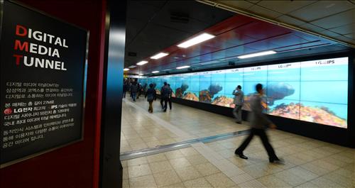 LG전자는 최근 지하철 2호선 삼성역과 코엑스를 연결하는 통로에 있는 디지털 미디어 터널에서 IPS 디스플레이의 우수성을 소개하는 영상을 내보내고 있다.